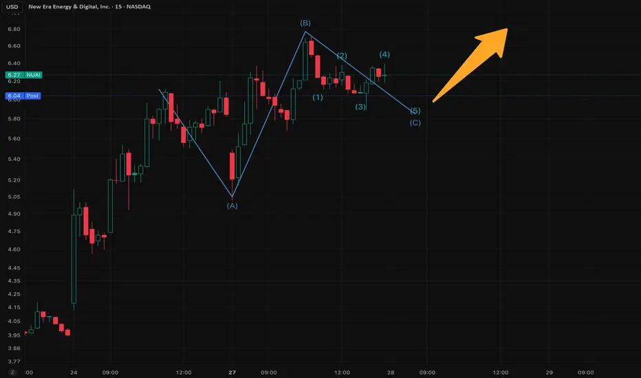 Every impulse wave has a correction. What goes up must come down. For NUAI, the time to come down has finished. You can see the end of the A, B, C cycle on a 15 min timeframe. Wave C closed with 4 subwaves down with the 5th subwave extending lower after hours.
