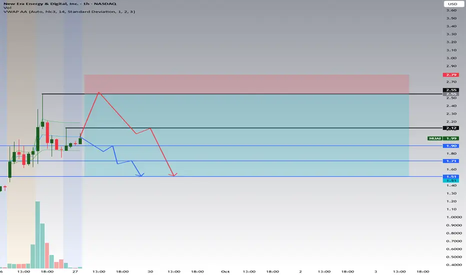 NUAI is overextended after a high-volume move. Two scenarios stand out for a short: either a morning pop rejection into resistance or a VWAP fail later in the session. Both offer defined risk and multiple downside targets.