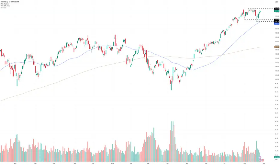 Nvidia’s relentless uptrend has paused in recent weeks, with prices consolidating sideways. This mean reversion has pulled the stock back toward its rising 50-day moving average. The short-term support and resistance levels created by the consolidation are now strategically significant.