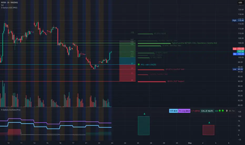NVDA is experiencing a clear options-driven magnet toward 105–106, with notable call wall concentration and positive NET GEX at those levels: