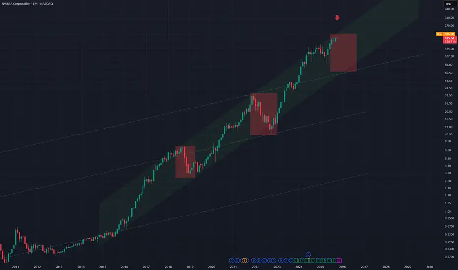 NVDA is at the top of an up channel on the Monthly chart