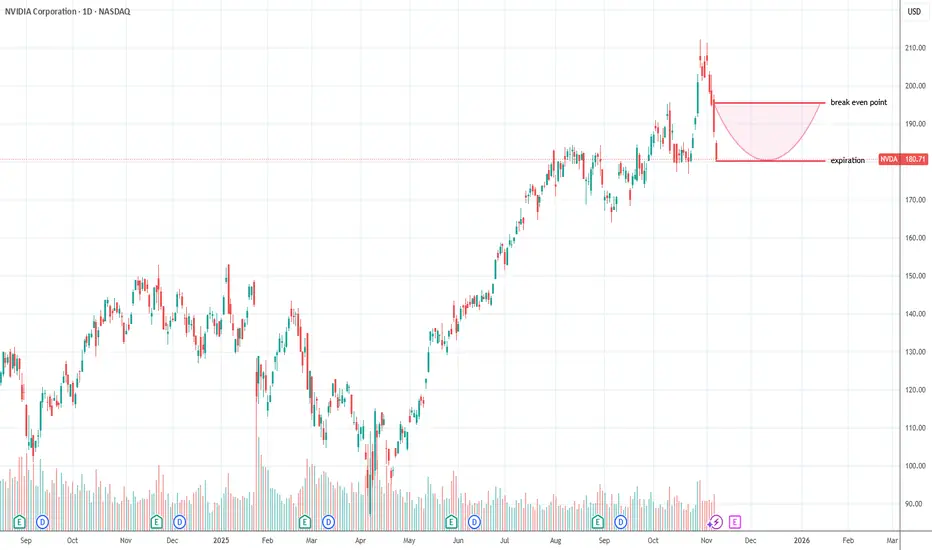 Reopened long on NVDA with Jan 16 ’26 $180 Call at 16.50. Expecting rebound from recent 13% drop and continuation higher through Q4 as momentum returns.