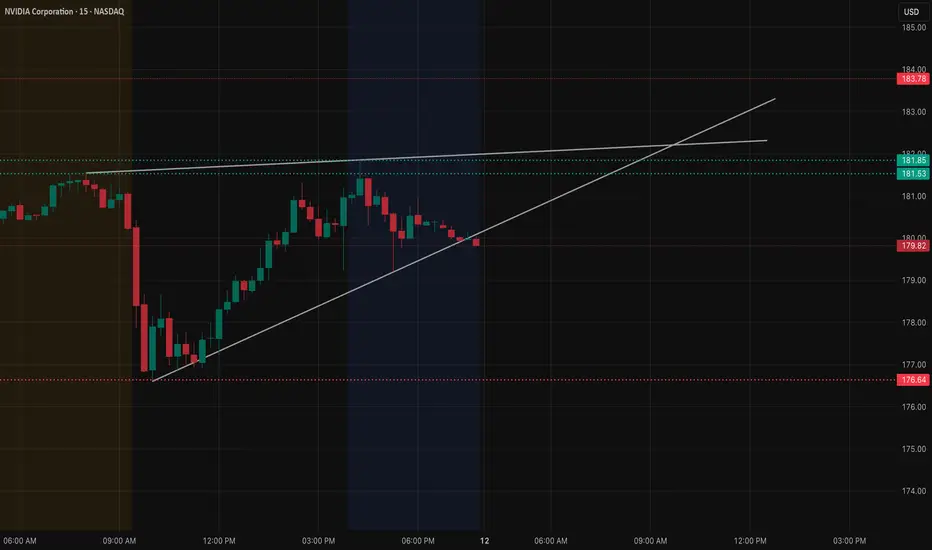Above price, the intraday resistance band near 181.50–182 has rejected multiple times. Until NVDA can claim and hold above that zone, the chart leans neutral-to-slightly-heavy.