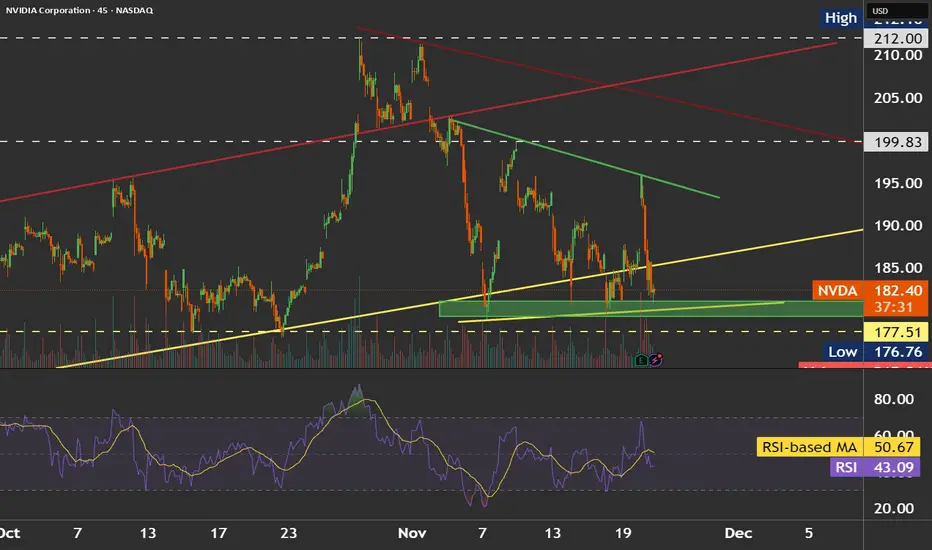 NVDA bears pushed market lower from a high of 196 ;looking at the chart we see price breaking-through our channel and price trading below our 50 day moving Average ,bulls have to defend 181-180 range a break will signal more selling pressure with remediate support at 177 and 164