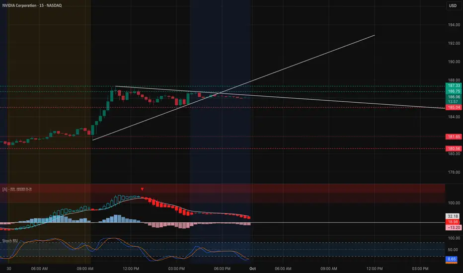 ๐ Intraday Thought (Oct. 1): If $185 holds, NVDA could bounce back toward $187โ$188. A break below $185 risks a flush to $182 and possibly $181.5. Scalpers can lean long on $185 support with tight risk, or fade near $187.5 if momentum stalls.