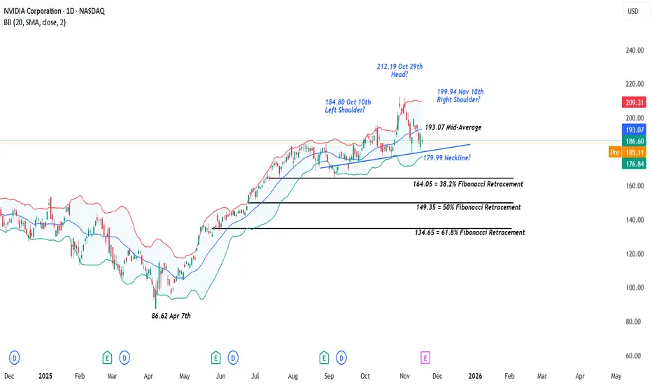 As already said, any Head and Shoulders pattern must see closes below neckline support to suggest a completion and risks for further price declines. For Nvidia the 179.99 support is still intact on a closing basis, and it could be argued this is not yet a valid reversal pattern.