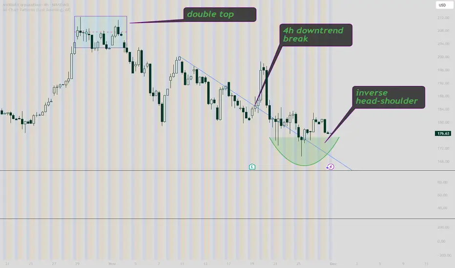 NVDA has broken a downtrend triggered by a double top, and has now formed a inverse head and shoulders
