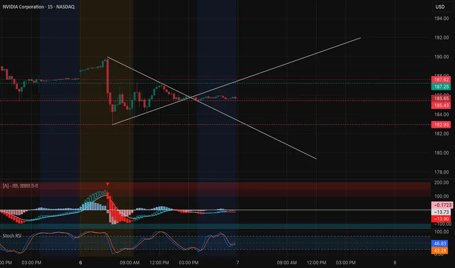 * Bearish setup: Consider 182.5P if NVDA fails at $187.5 and breaks below $183 with confirmed MACD divergence.
