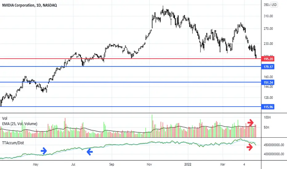 NVDA has a high-volume support break last week. Dark Pool buy zones are stronger around 180 and 150. A month to earnings with higher quarterly revenues expected. The bottom isn't far off, but it may take a while to form in these market conditions.
