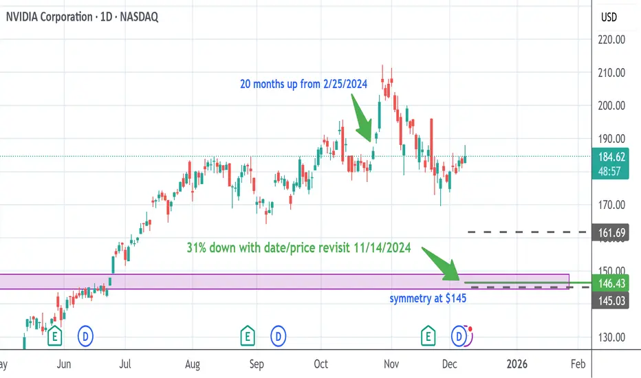 When I get a date, it often means a price revisit, or could be a pattern repeats from the past.. In this case, it's suggesting a price revisit to where NVDA traded on 11/14/2024. Then, I asked how many percent down from the ath at $212 & it gives me 31%.