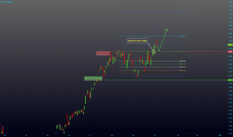NVDA has been in a range since end of July until September 30th, where it broke above the range. I expect to see more upside from here.