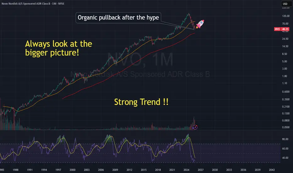 Zooming out tells a very different story — over the decades, Novo Nordisk’s stock has gained over 30,000% 🚀, riding steady innovation and strong global demand.