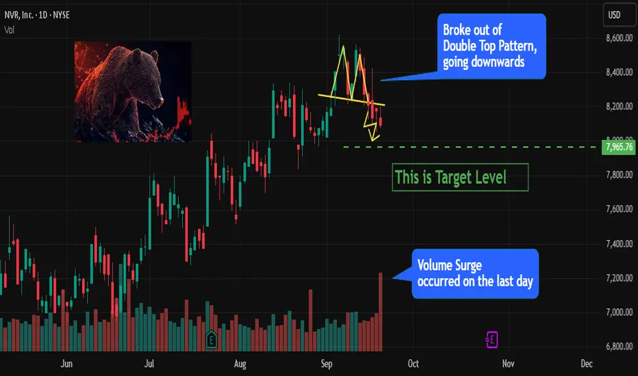 With breakdown of the Double Top pattern and heavy volume, NVR shows strong downward potential.