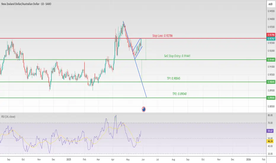 NZDAUD 1 Daily Chart Bearish Flag Continuation Pattern