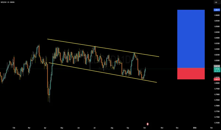 NZD/CAD is currently holding near a structural demand zone, after a sustained downtrend in recent months. Price has shown multiple rejections of lower levels, forming a potential accumulation base—this hints at a possible swing reversal if bulls step in with conviction. On the upside, the key pivot zone around 0.85-0.86 becomes resistance to watch for a breakout. If broken, price could target 0.860+ as the next clean supply area.