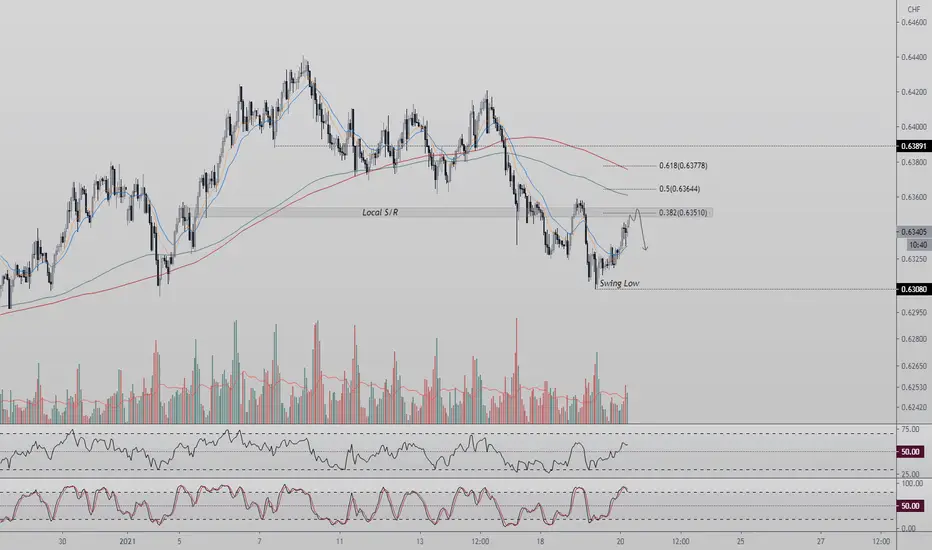 NZDCHF’s immediate price action is impulsive below Local S/R that is in confluence with the .382 Fibonacci, this allows for a bearish bias.
