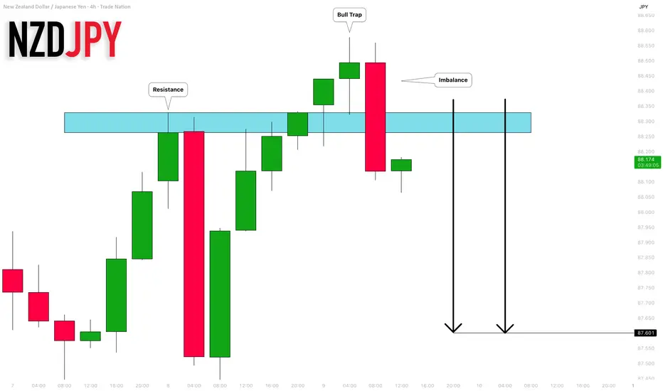 It looks like with have a bull trap on NZDJPY after a test of a key