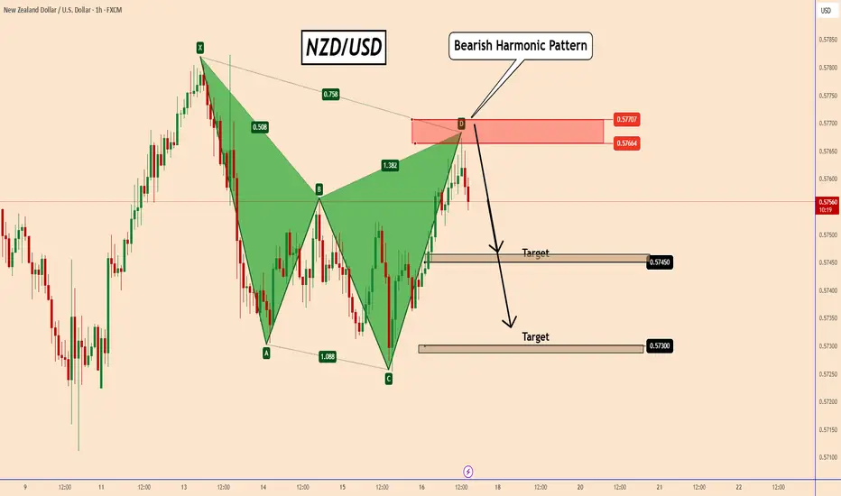 NZDUSD: Bearish Harmonic Pattern