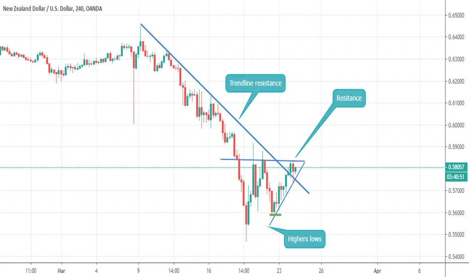 Hello friends, here is our analysis on NZDUSD in H4 time frame. As we can see that the pair is making new higher lows and at the same time not breaking its resistance as well. However the upper trend line that acted as a support is broken and also retested. We will suggest you guys to wait till the rectangle pattern is broken and retested. We will keep you updated on this.