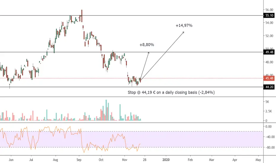 Expecting bounce from extremely oversold weekly and daily levels. If stop breached, be prepared to catch new daily reversal on lower levels with a tight stop.