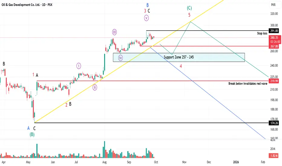 Alternately, if price goes above the 291 level it will make the 5th wave extend which will take prices toward 305 - 310 level