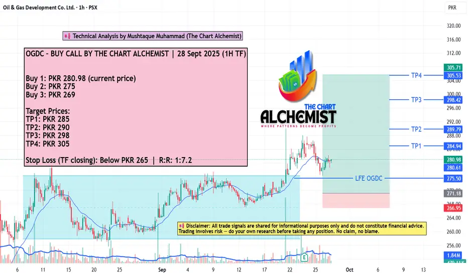 OGDC – BUY CALL BY THE CHART ALCHEMIST | 28 Sept 2025 (1H TF)
