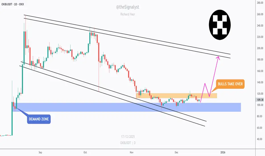 📉After a prolonged corrective phase, OKB is starting to show early signs of structural stabilization. Price has respected the major demand zone, where selling pressure slowed down and downside momentum clearly weakened.