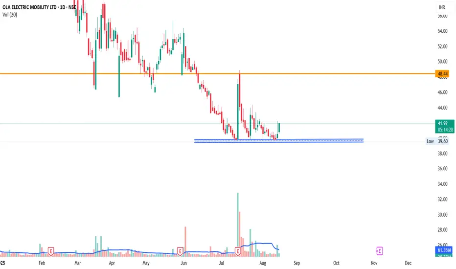 OlaElec has taken a strong support and showing a good momentum. If it closes above its previous day High of 42.20 then it may give the target upto 48-50