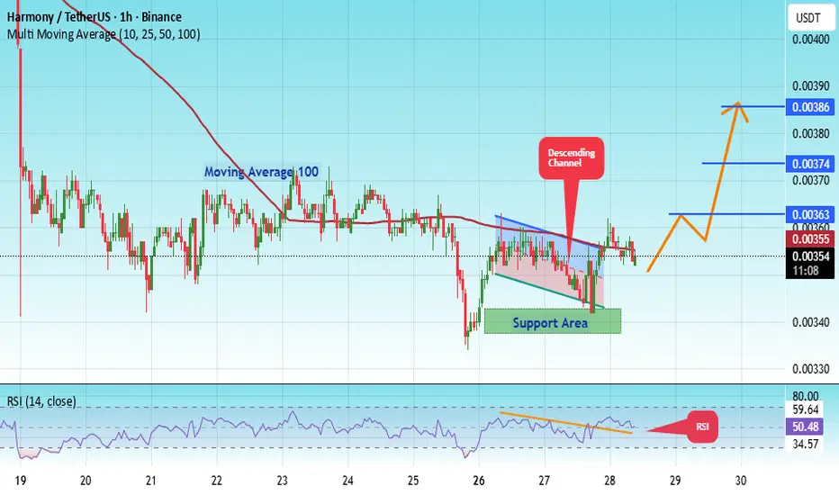 There is a key support zone in green at 0.00340. The price has bounced from this level several times and is expected to bounce again.