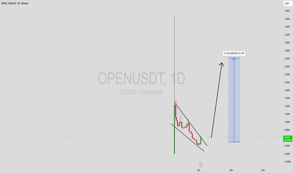 OPENUSDT is showing a classic falling wedge pattern, a bullish reversal setup that often signals the end of a downtrend and the start of a strong rally. The pattern has been forming with steady consolidation, and with good volume support, there is a strong possibility of a breakout to the upside. Falling wedges are historically known for explosive moves once price breaks resistance, making this setup very attractive for traders.