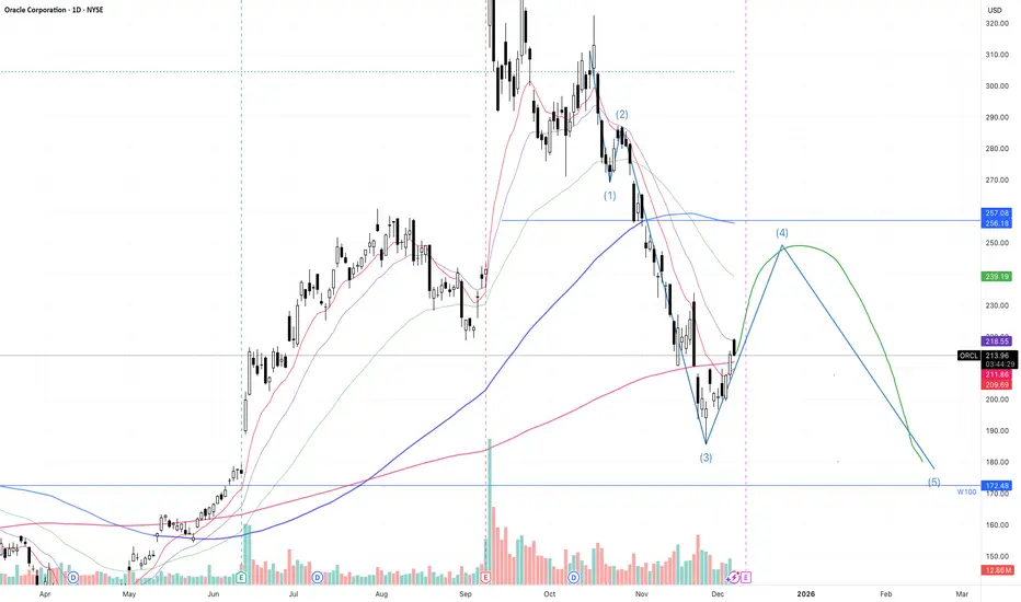 Oral looks like it just completed a wave 3. I am expecting a wave 4 bounce from here. It retook the Daily 200, my target for wave 4 is the Daily 100. From there a possible roll over and gap fill, but will have to see what the price action does around the D100.