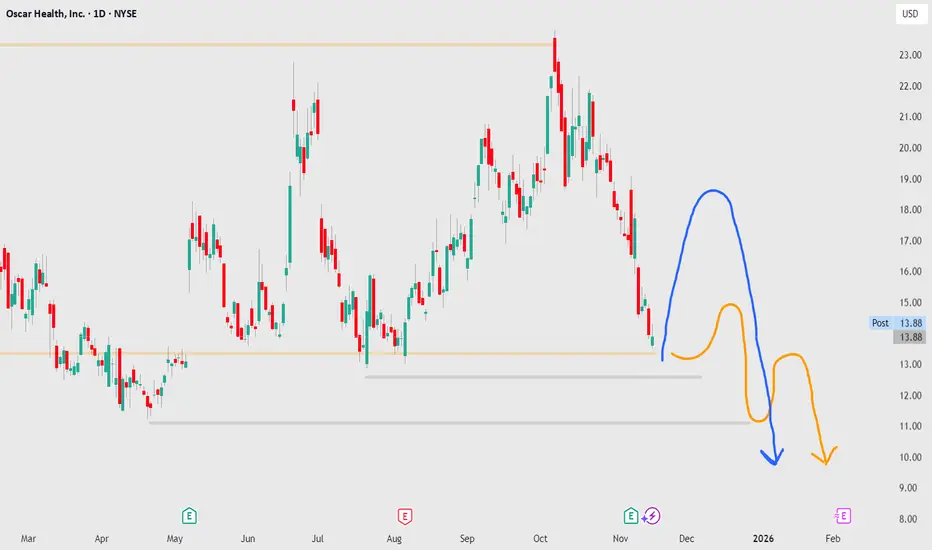 Not bullish on OSCR. Since we're at the bottom of the range, expect buying / demand.