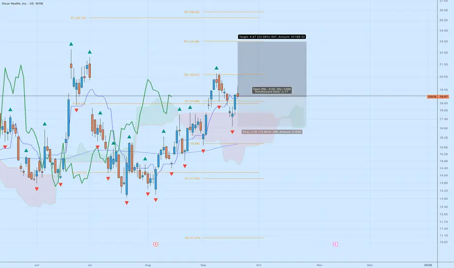This isn’t a “bet the farm” play, but OSCR gives traders a very tradable setup: clear support, well-defined stop, and room to run into the low $20s. As long as it holds above the cloud and the $18 pivot zone, I like the long bias.