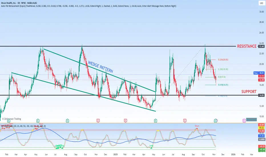 OSCR is an undervalued asset, and its current technical posture offers a strategic opportunity for accumulation near strong support levels, with a primary buy zone identified at the $14.00 level.