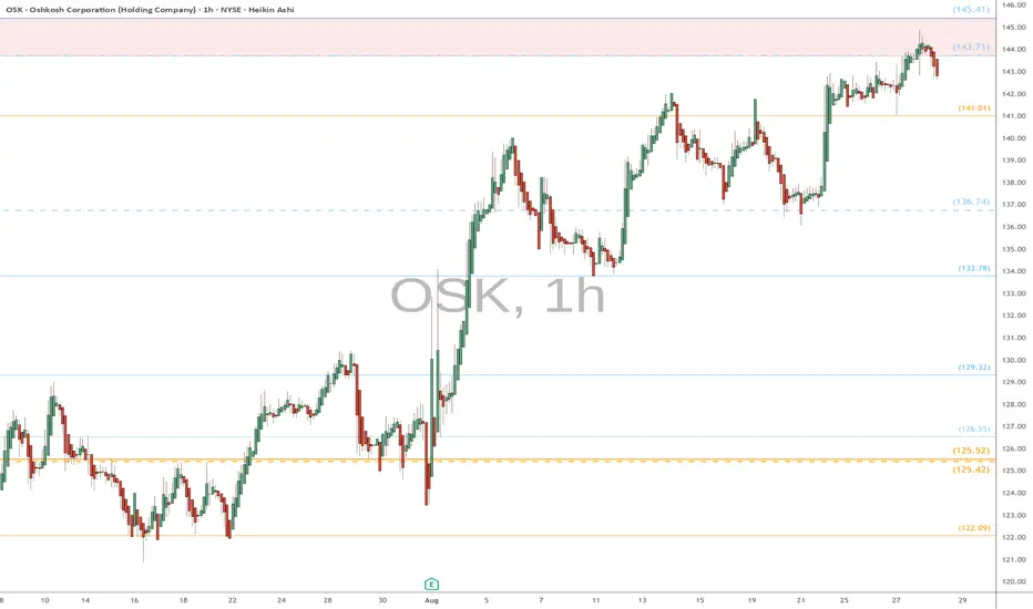 OSK watch $143-145: Longs target hit, looking for Dip-to-Fib buy