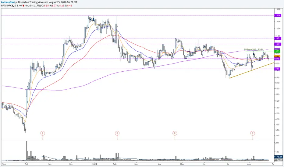 is going to be a critical level of breaking point, next level pf resistence is 10 and 10.71...the others moving averages are right now at that last price