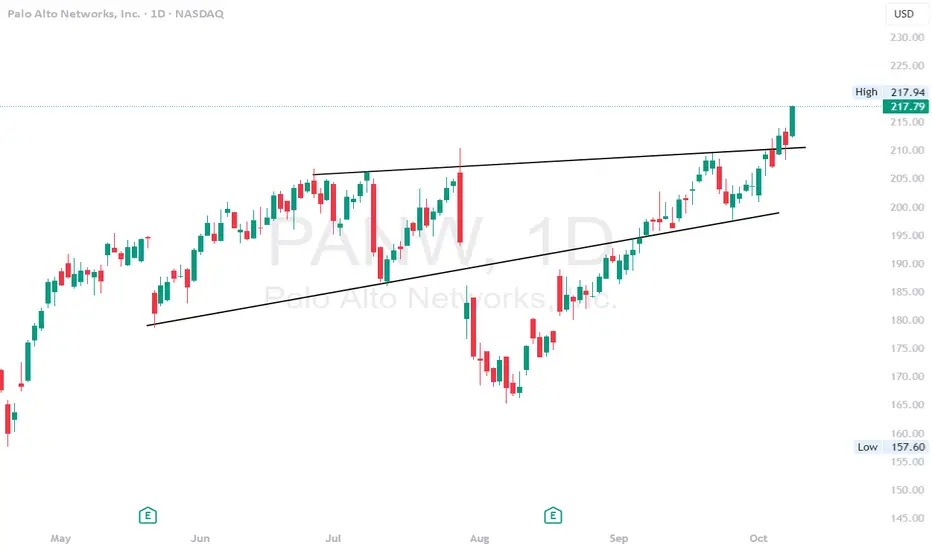 PANW - stock finally breaking and holding above $210 level, Stock hitting all time highs today. looking for bigger move here. Stock has next resistance at $225 and $240. looking for those price targets to hit. Stock is decent at the indicator level.