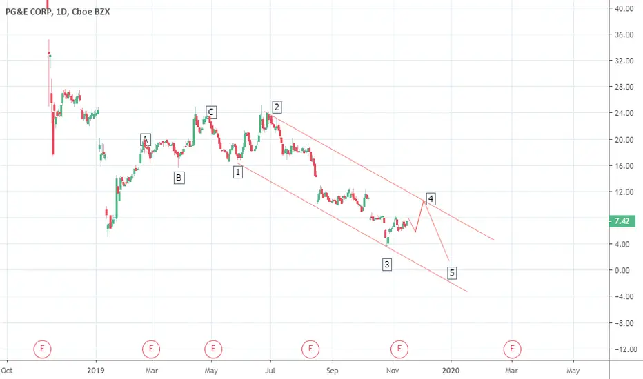 It's always important to keep an open mind. I believe this chart makes the most sense from a long to medium term stand point. If that is the case, then we are currently in wave 4 of this down move and will retrace to 10 area before falling below 3.