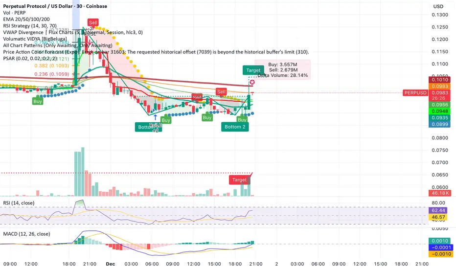 PERPUSD is sitting on a strong historical demand level while multiple momentum indicators show early reversal conditions. If buyers continue to step in and volume expands on green candles, this area could mark the start of a short-term bounce or even a broader trend recovery.