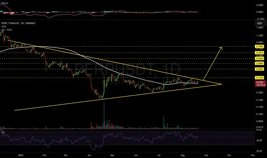 #PERP is moving inside a symmetrical triangle on the daily chart. For the bullish scenario, it must hold above the daily SMA100 and break above the triangle resistance. If this happens, the potential targets are:
