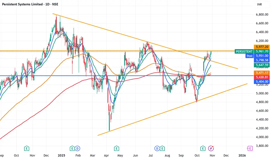 Persistent on daily TF chart indicating a possible up move. EMA cluster formation, trendline breakout, and now possible consolidation around 5980(longer the consolidation, more prominent breakout ) . Above BO, my short term target would be 6800. What are your views?