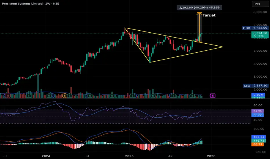 Persistent System in weekly chart a clear break out of a triangle manage the SL as per your risk capacity , Target can be 8000