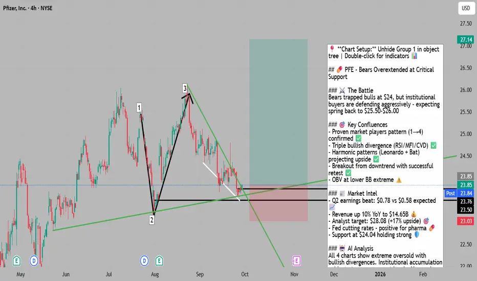 - Technical Analysis: PFE holds support from accumulated volume at $24.04 with potential for an upward reaction when this support is tested . Current price sits precisely at this critical level.