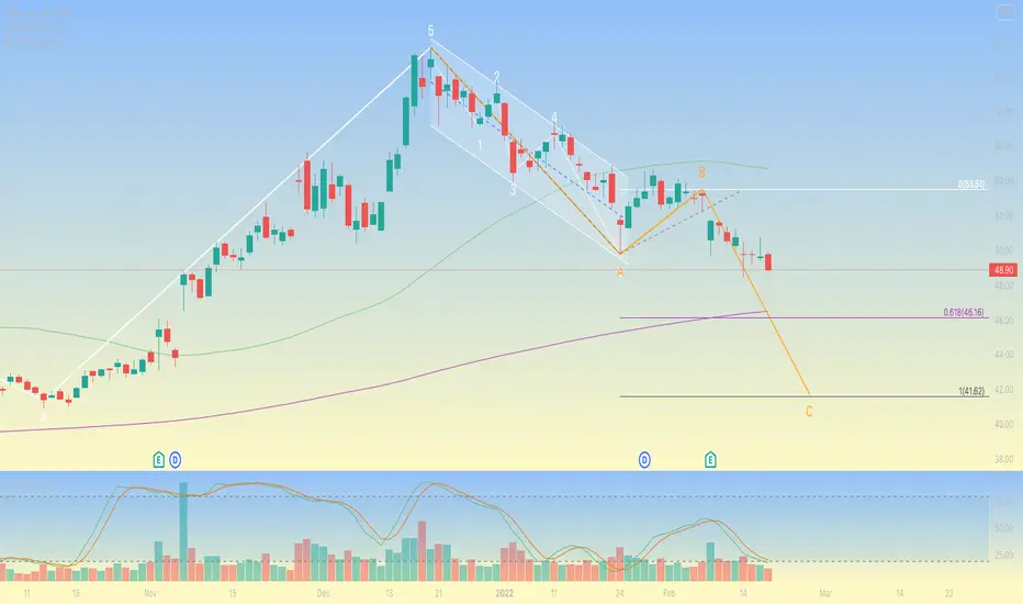 I see a 5 waves move up finished at $61 on 20th December, fallowed by an A-B-C standard correction.