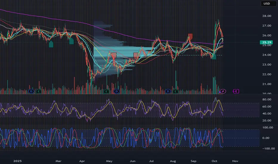 PFE after breaking out on trump deal and now working with him to sell their products through TrumpRx launching next year. They are also exempt from tariffs for 3 years and plan to invest 60B in the US. good support/resistance flip could take place here would like to hold 25 but 24 is possible. Next stop $30 could take a while. They've gotten hammered past 4 years the momentum up will be strong. I did well with ATM calls last run up will probably do it again month or two out.