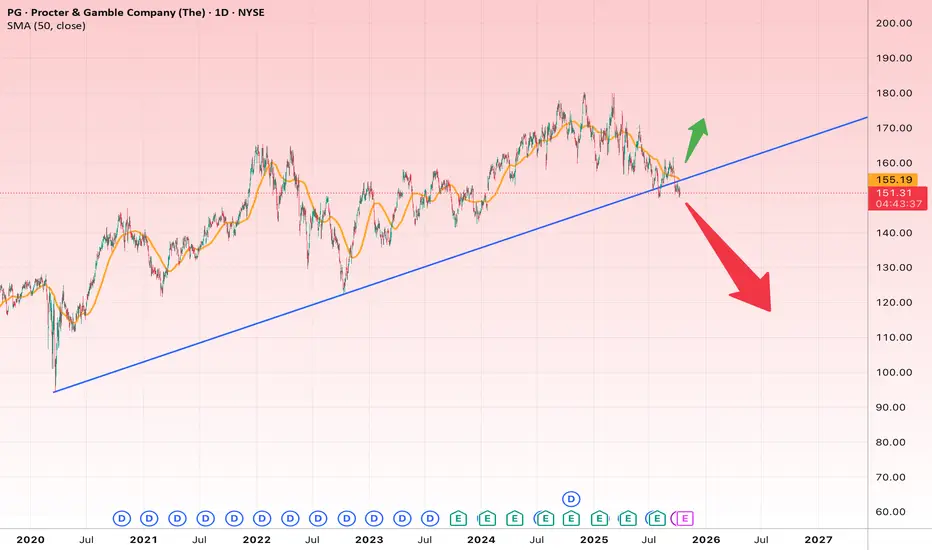 If PG defends its long-term trendline, the broader uptrend remains intact.