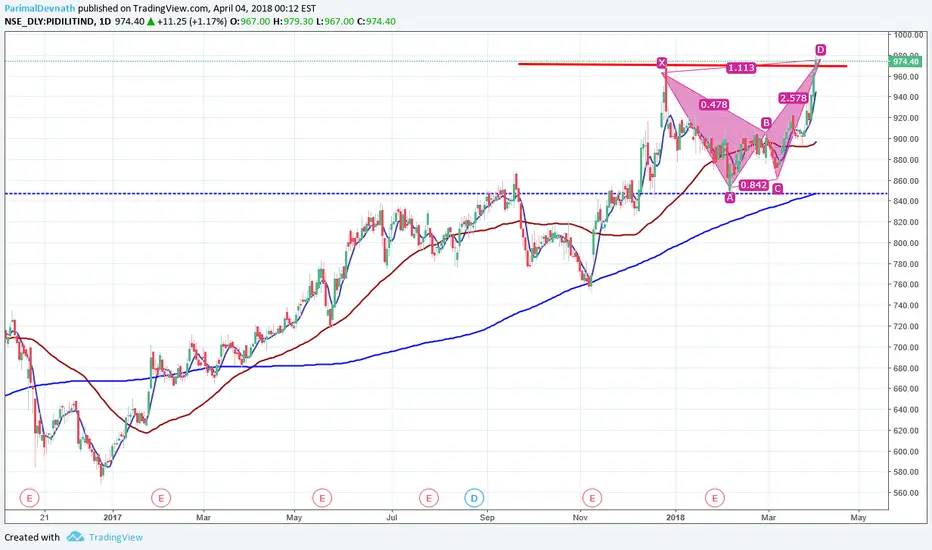 Fourth leg of Harmonic has been completed and a Double Top pattern has been in place. It is also possible that a breakout from the earlier high is taking place. A great stock. It enjoys almost a monopoly. Corrections are to be bought in.