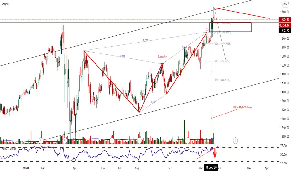 Ultra high volume up bars - trap of Smart Money , Higher volume- Professionals are selling into the public buying.price need to follow Green Trend line & hit target , If price Breaks Red Trend line is where EXIT before SL hits