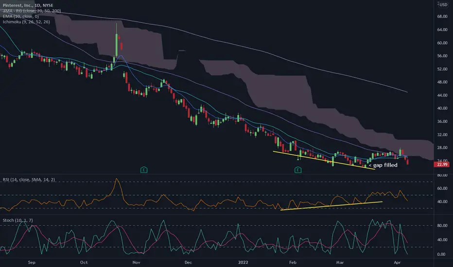 Bullish divergence on daily, and weekly shows also a very good place to buy. If PINS continues below 23 you have little to lose. Allow time in your options. I will go out for this one and hold through next earnings.