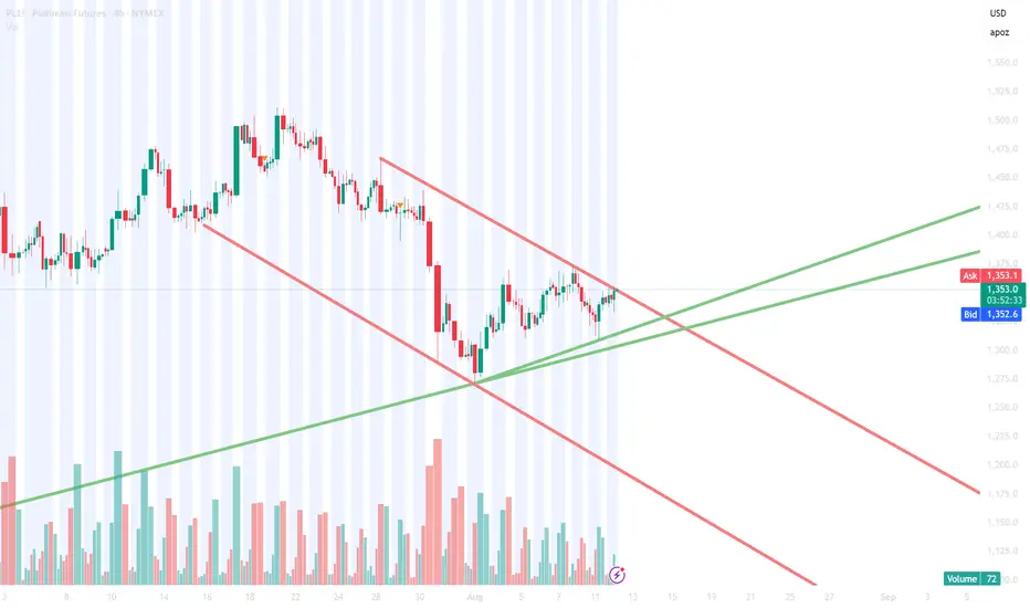 Taking a long position in Platinum, anticipating a breakout to the upside from the current channel. Managing the position with a tight stop loss.